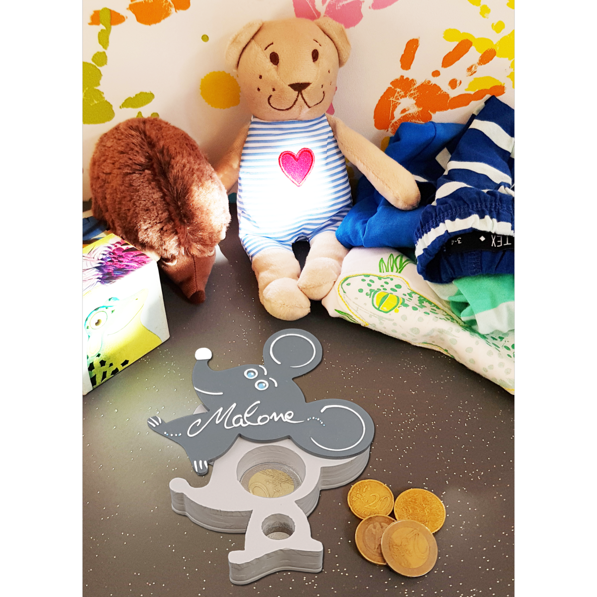 -Boîte à dents de lait en forme de petite souris avec le Prénom de votre enfant.