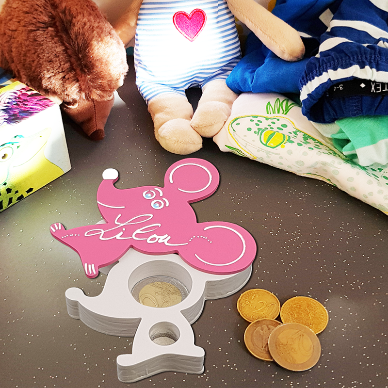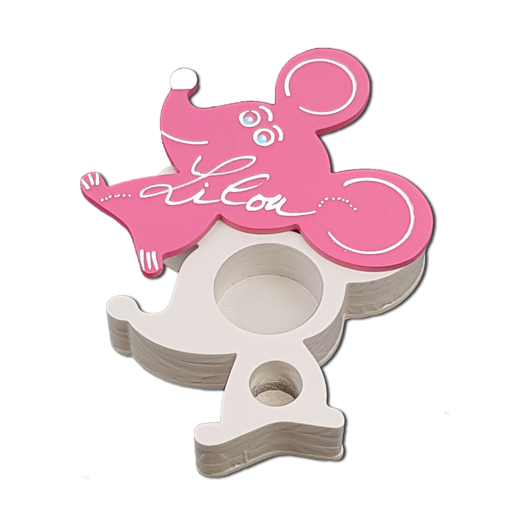 -Boîte à dents de lait en forme de petite souris avec le Prénom de votre enfant.