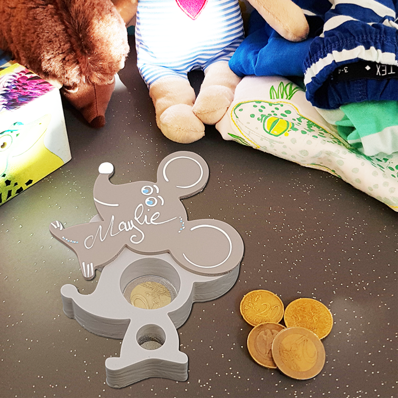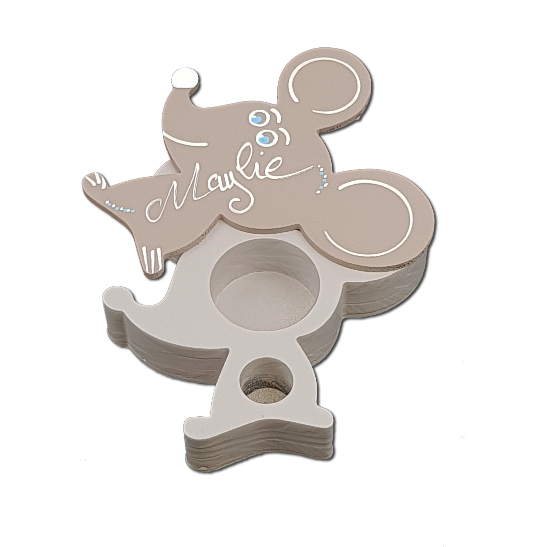-Boîte à dents de lait en forme de petite souris avec le Prénom de votre enfant.