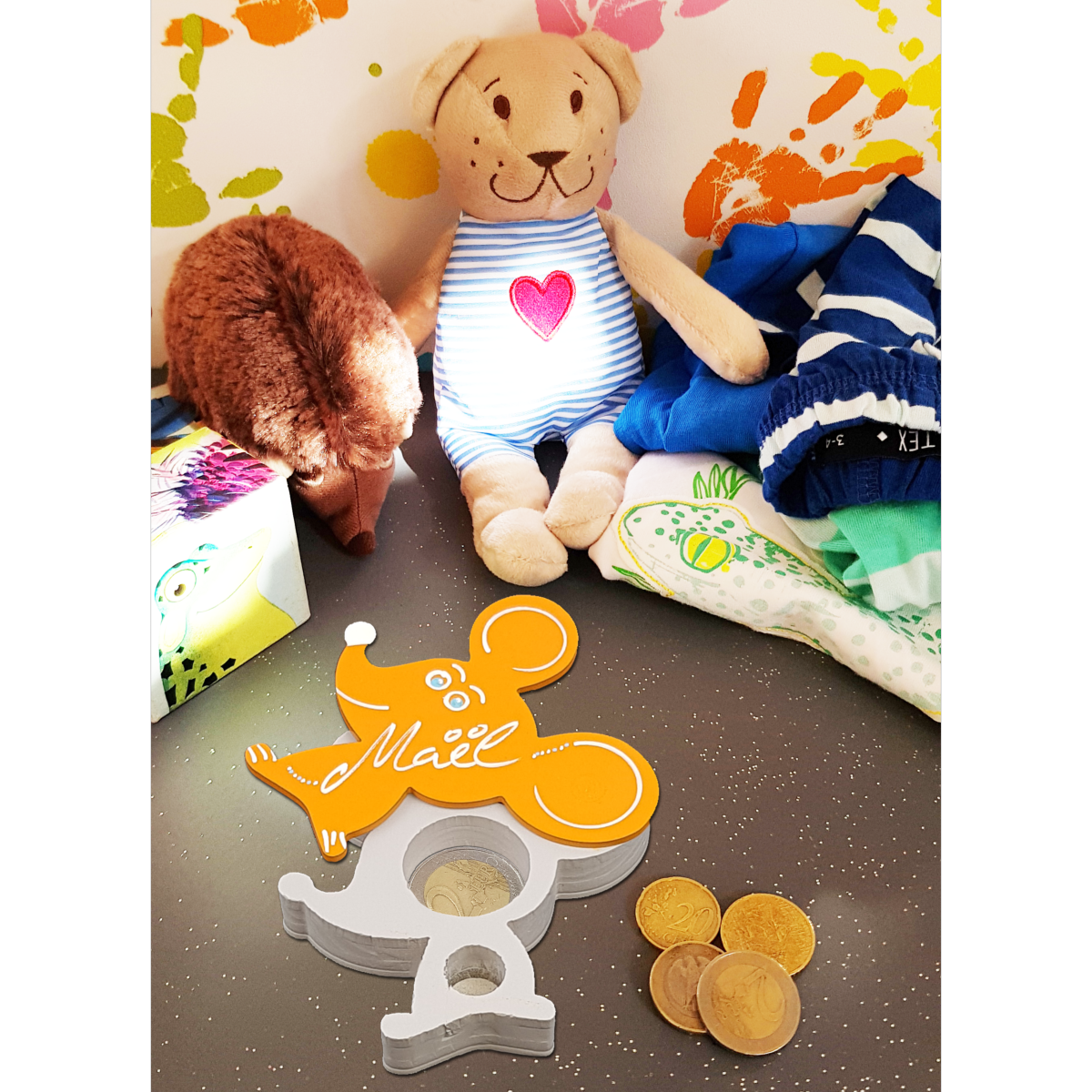 -Boîte à dents de lait en forme de petite souris avec le Prénom de votre enfant.