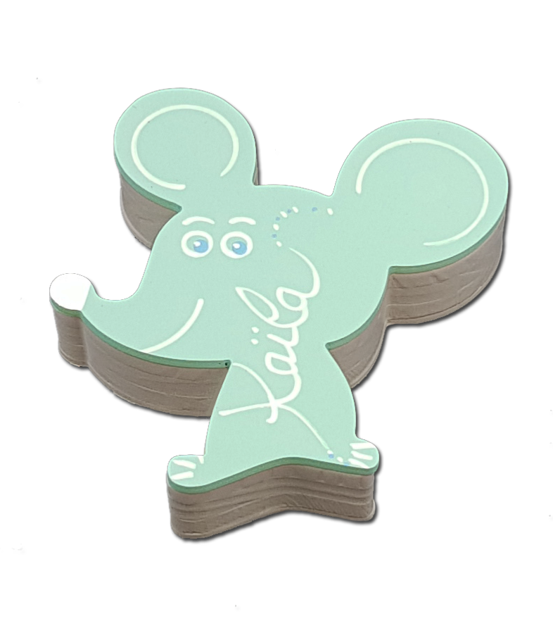 Le prénom est écrit au feutre acrylique à la main, recouvert d'un vernis acrylique satin.