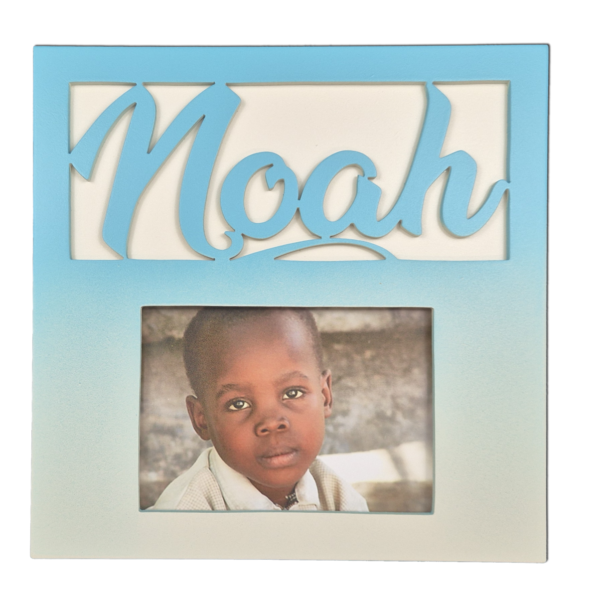 Cadre 1 photo prénom personnalisable en bois couleur Ecru/Turquoise