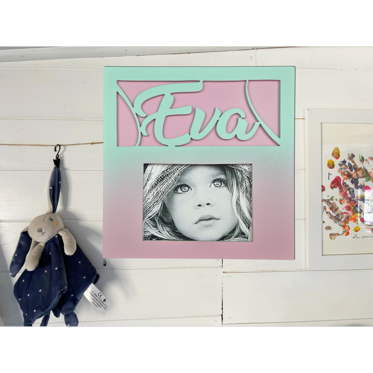 1. Cadre 1 photo, personnalisé au prénom de votre enfant couleur Lilas/Vert