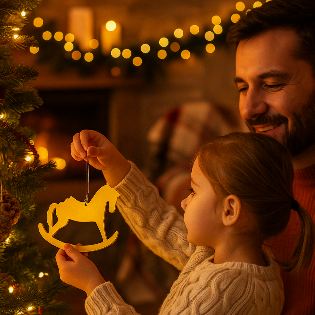 Noël… Cette déco au motif Cheval à Bascule marquera les esprits et accompagnera votre enfant au fil des années.