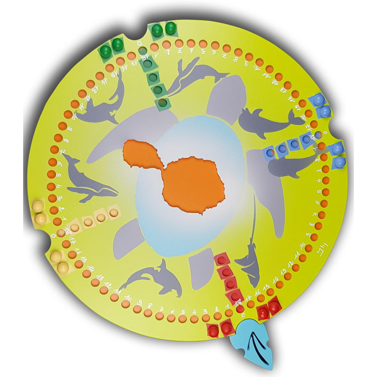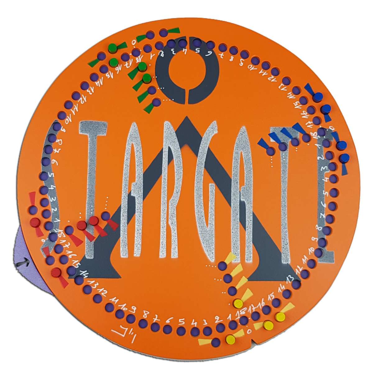 -Dimensions: Diamètre 60 cm livré avec billes, règle, cartes et repère de donne.