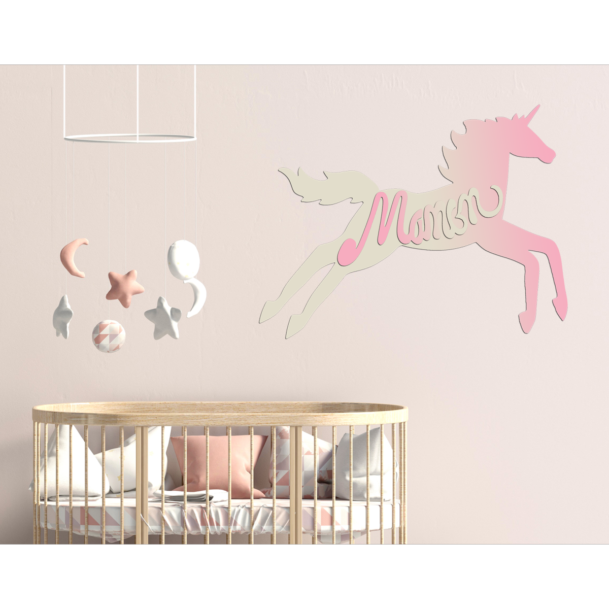 Plaque de porte en bois forme Licorne pour enfant couleur au choix prénom personnalisable