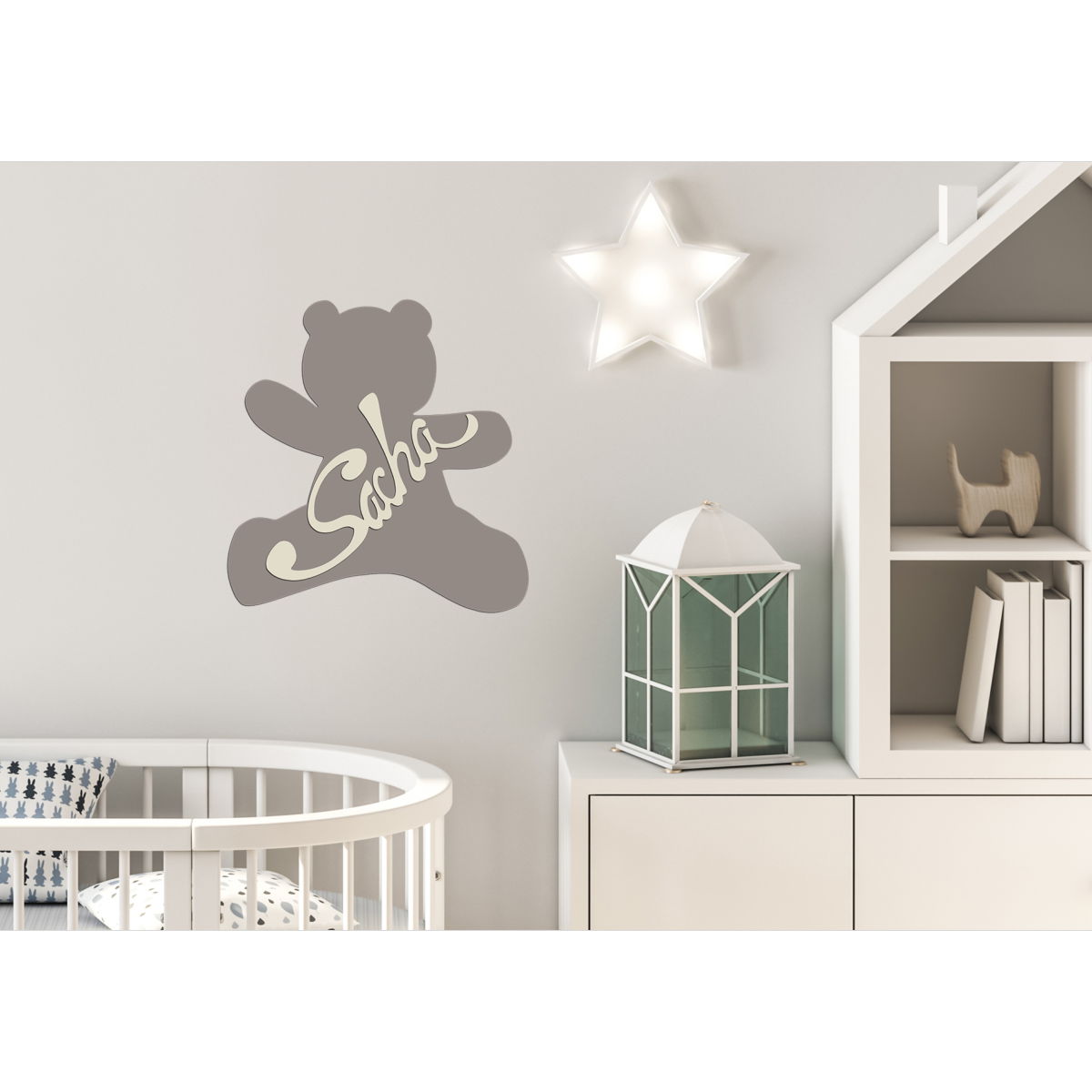 Plaque de porte en bois forme Ourson pour enfant couleur au choix prénom personnalisable