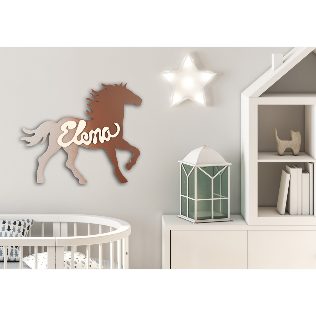 Plaque de porte en bois forme Petit Cheval pour enfant couleur au choix prénom personnalisable