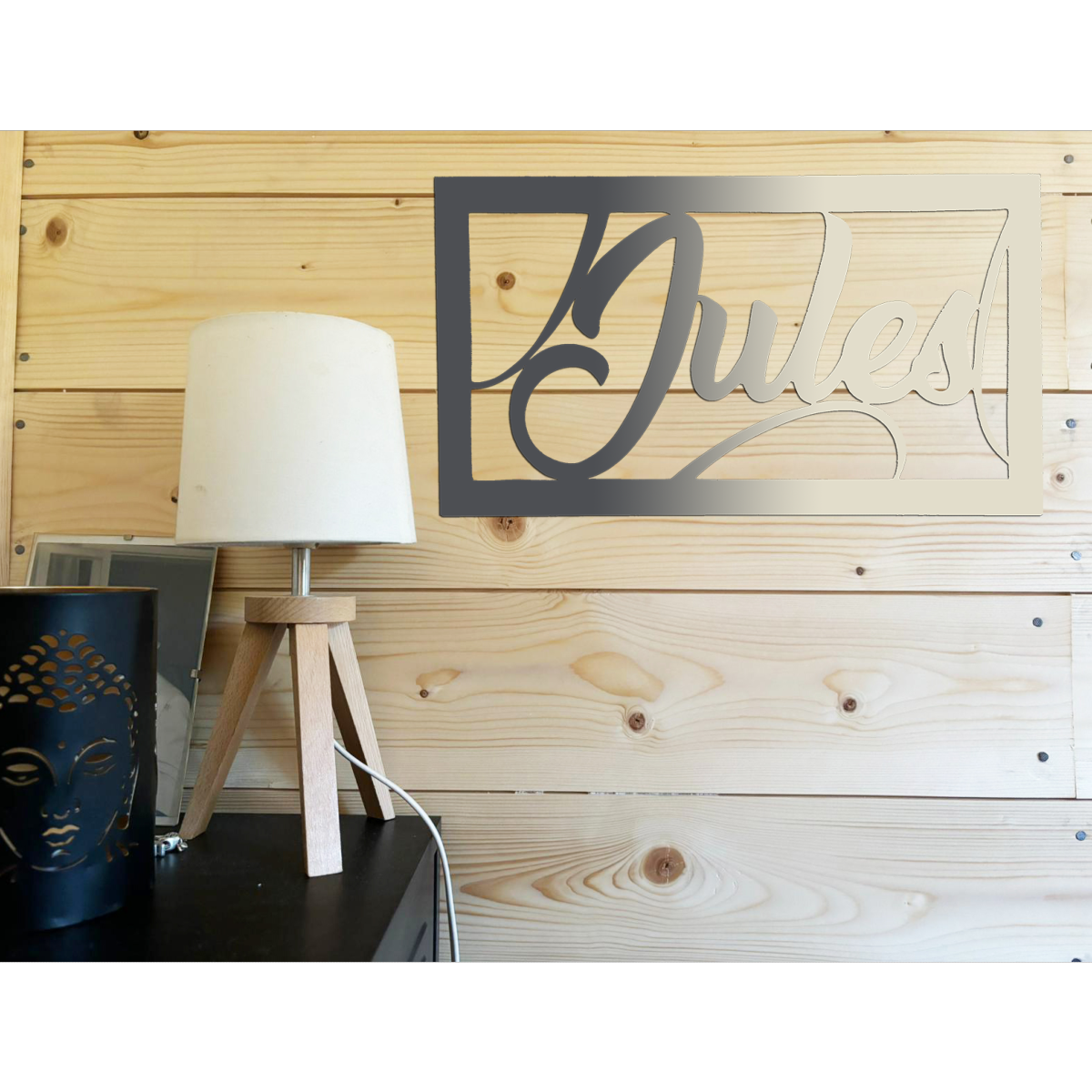 -Le Prénom est réalisé à la main, à la scie à chantourner, puis protégé par un vernis acrylique satin.