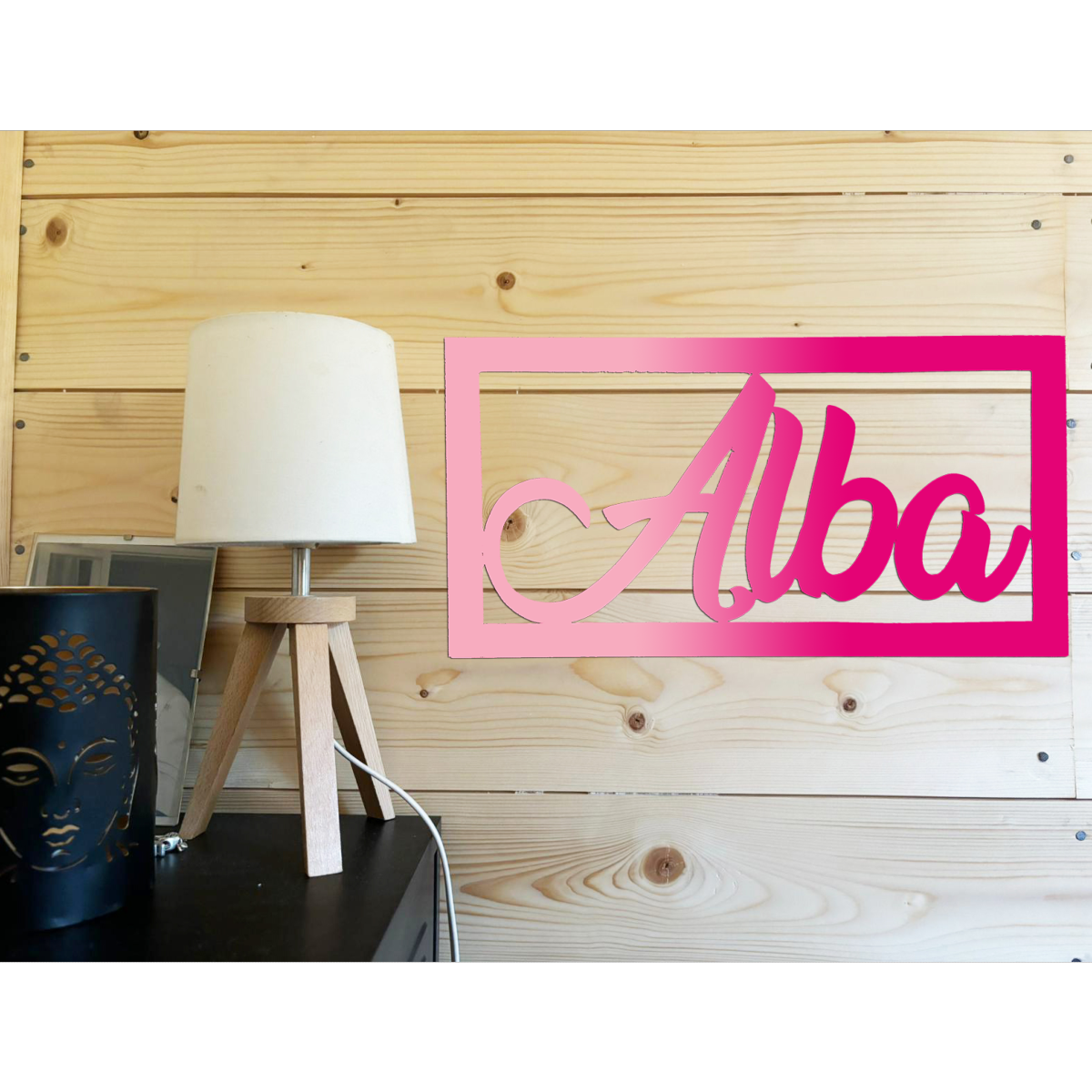 -Le Prénom est réalisé à la main, à la scie à chantourner, puis protégé par un vernis acrylique satin.