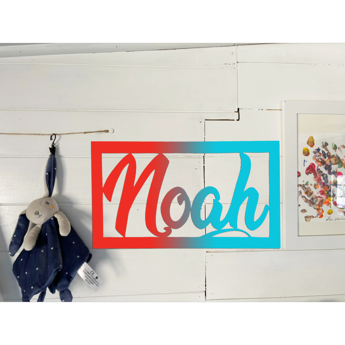 Découvrez la super plaque de porte rectangulaire personnalisée de couleur Rouge/Turquoise,  avec le prénom de votre enfant.