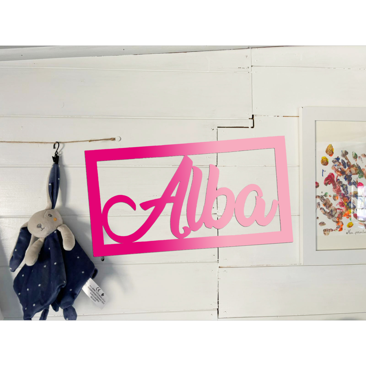 -Le Prénom est réalisé à la main, à la scie à chantourner, puis protégé par un vernis acrylique satin.