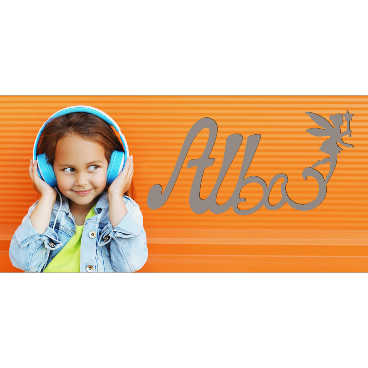 Découvrez cette jolie plaque de porte personnalisée en bois, avec motif Fée en bout de prénom, de couleur Mastic.