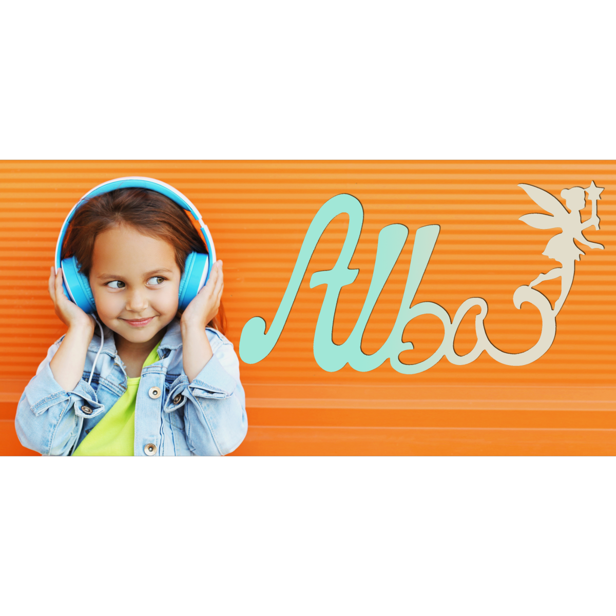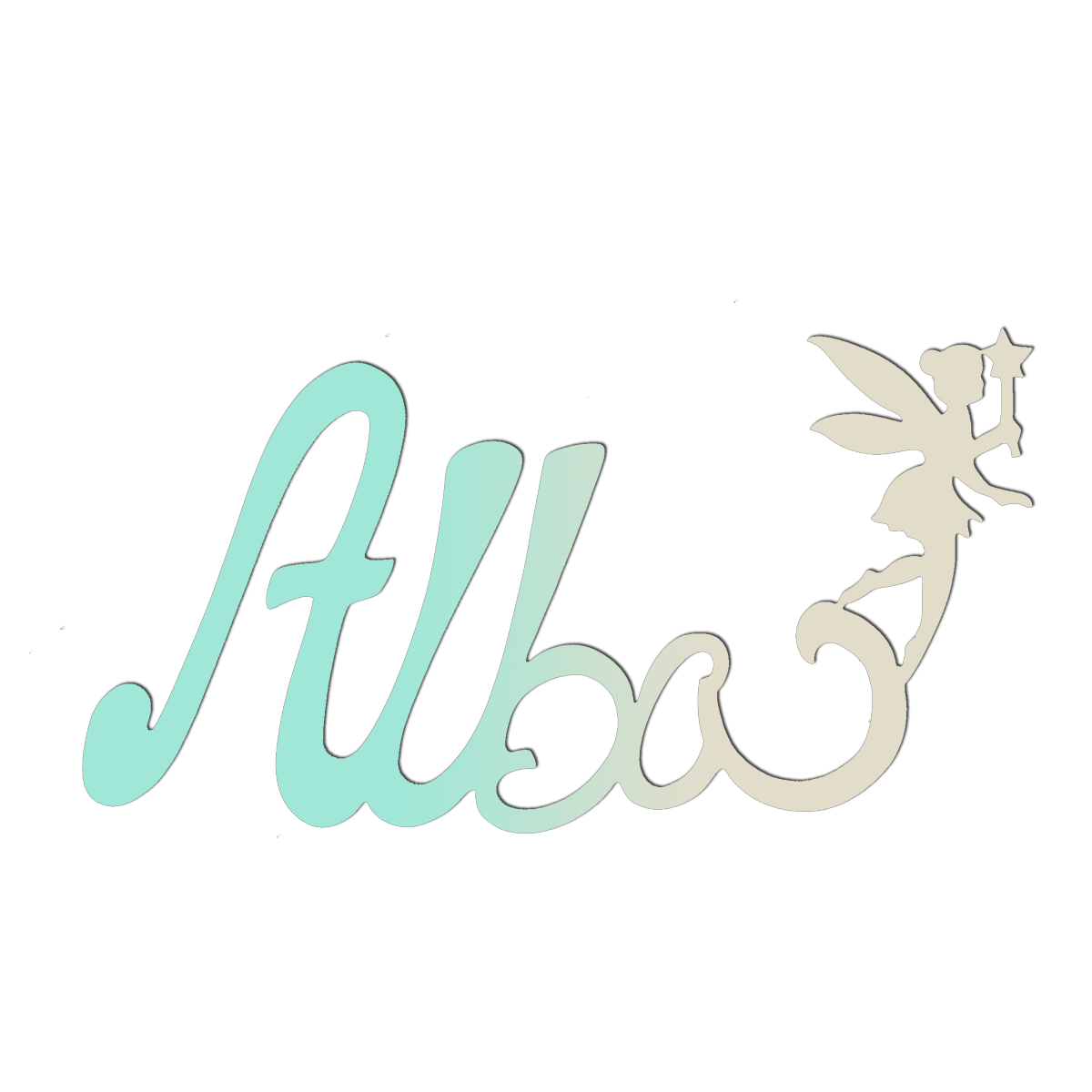 Découvrez cette jolie plaque de porte personnalisée en bois, avec motif Fée en bout de prénom, de couleur dégradé Vert/Ecru.