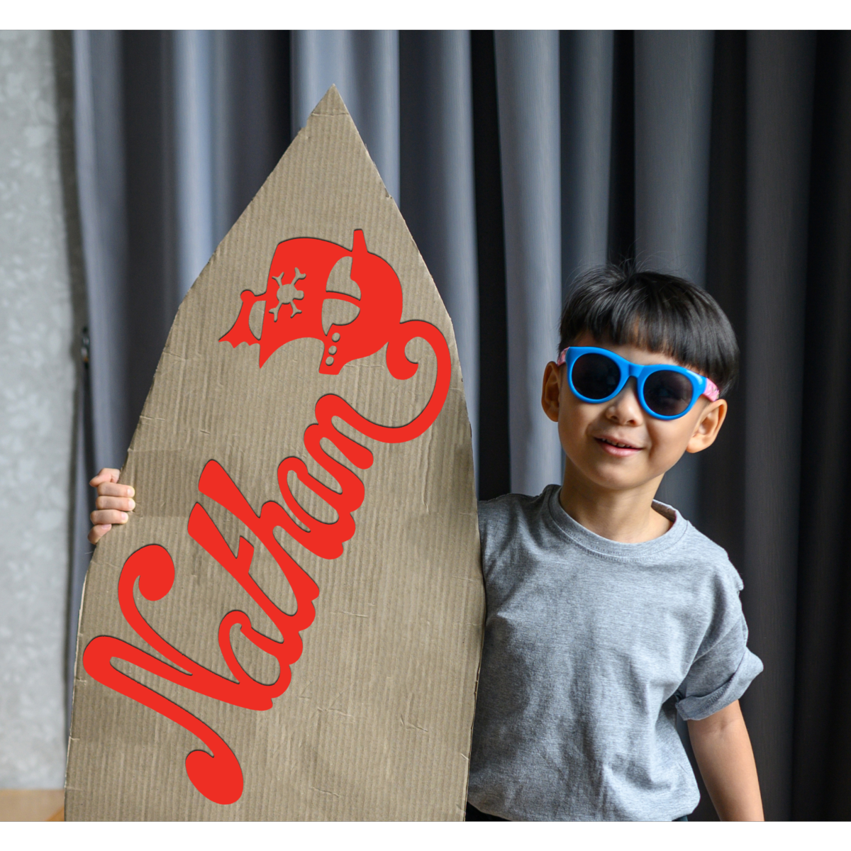 Découvrez cette jolie plaque de porte personnalisée en bois, avec motif Pirate en bout de prénom de couleur Rouge.