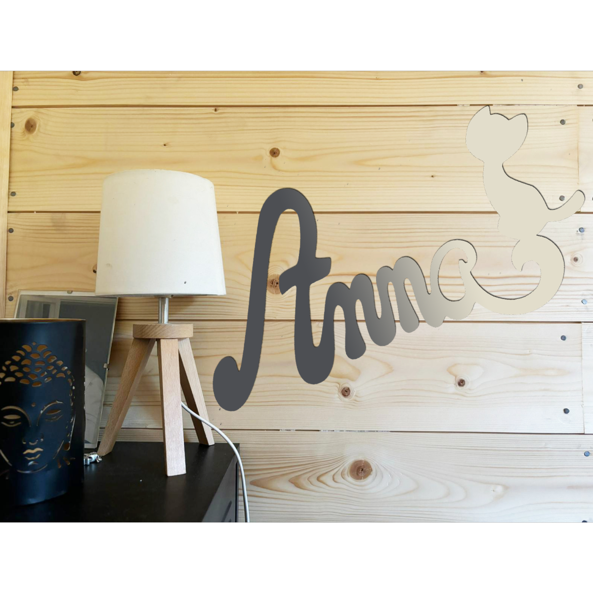 Découvrez cette jolie plaque de porte personnalisée en bois, avec motif Chat en bout de prénom, de couleur dégradé Anthracite/Ecru.