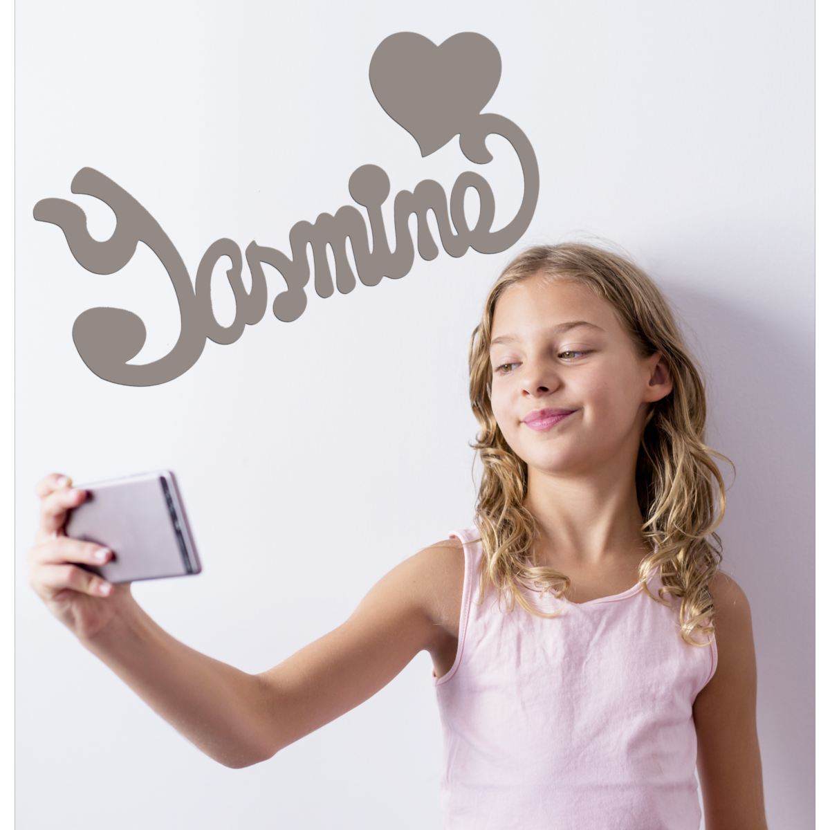 Découvrez cette jolie plaque de porte personnalisée en bois, avec motif Cœur en bout de prénom, de couleur Mastic.
