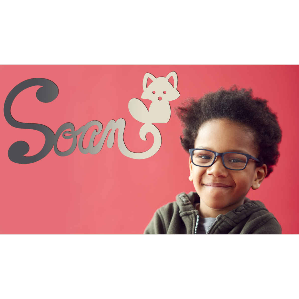 Découvrez cette jolie plaque de porte personnalisée en bois, avec motif Renard en bout de prénom, de couleur Anthracite/Ecru.
