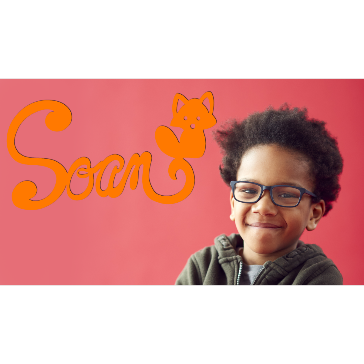 Découvrez cette jolie plaque de porte personnalisée en bois, avec motif Renard en bout de prénom, de couleur Orange.