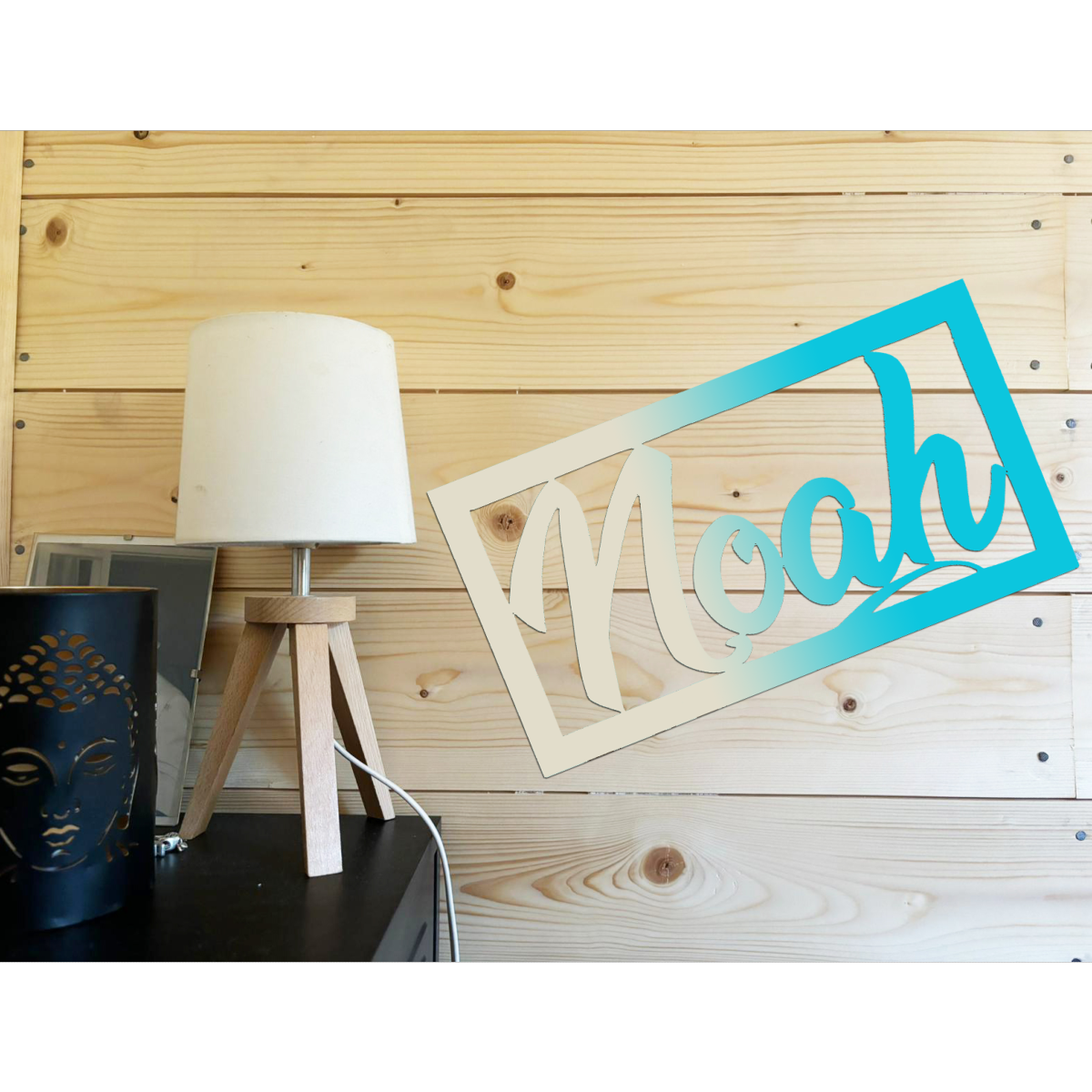 -Le Prénom est réalisé à la main, à la scie à chantourner, puis protégé par un vernis acrylique satin.
