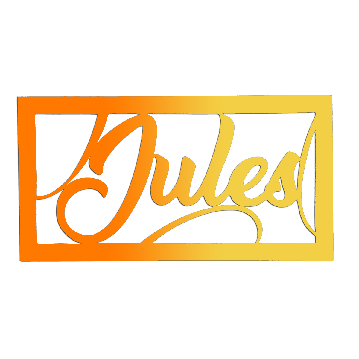 Découvrez la super plaque de porte rectangulaire personnalisée de couleur Orange/Jaune avec le prénom de votre enfant.