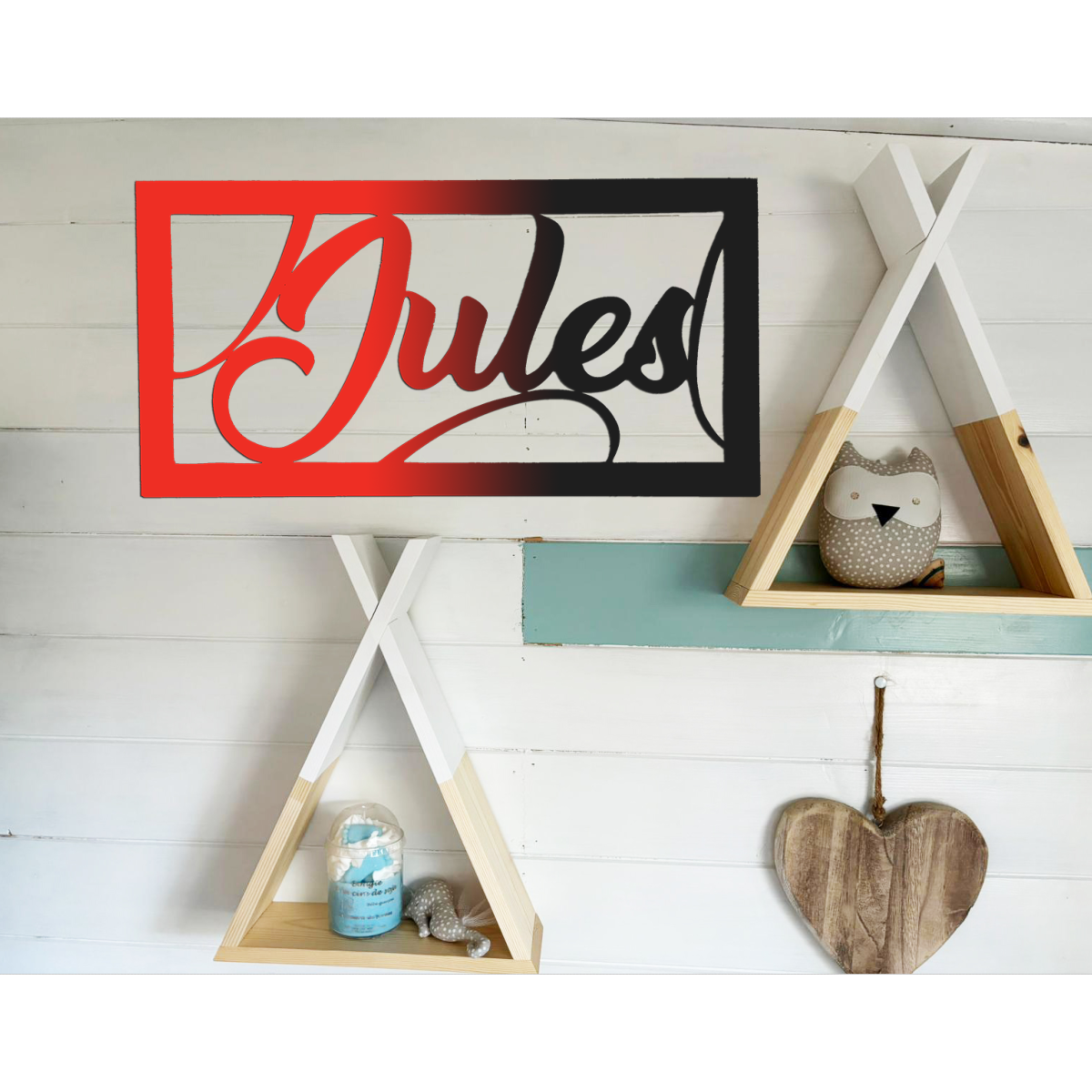 -Le Prénom est réalisé à la main, à la scie à chantourner, puis protégé par un vernis acrylique satin.