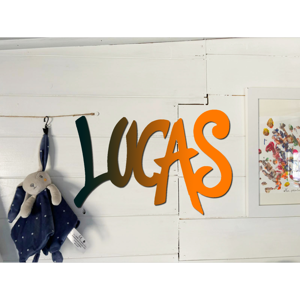 Le prénom est découpé sur une plaque de MDF 3 mm.