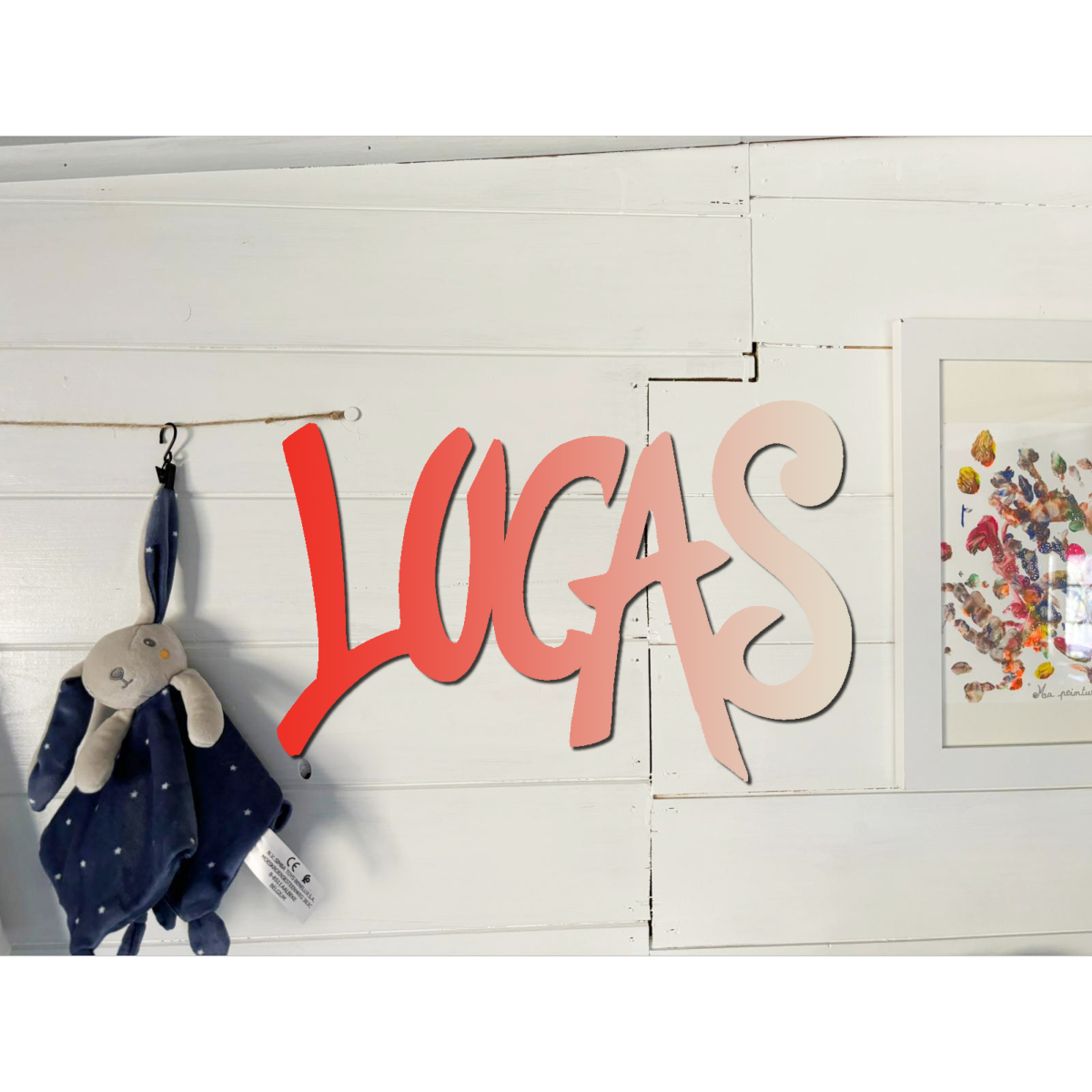 Le prénom est découpé sur une plaque de MDF 3 mm.