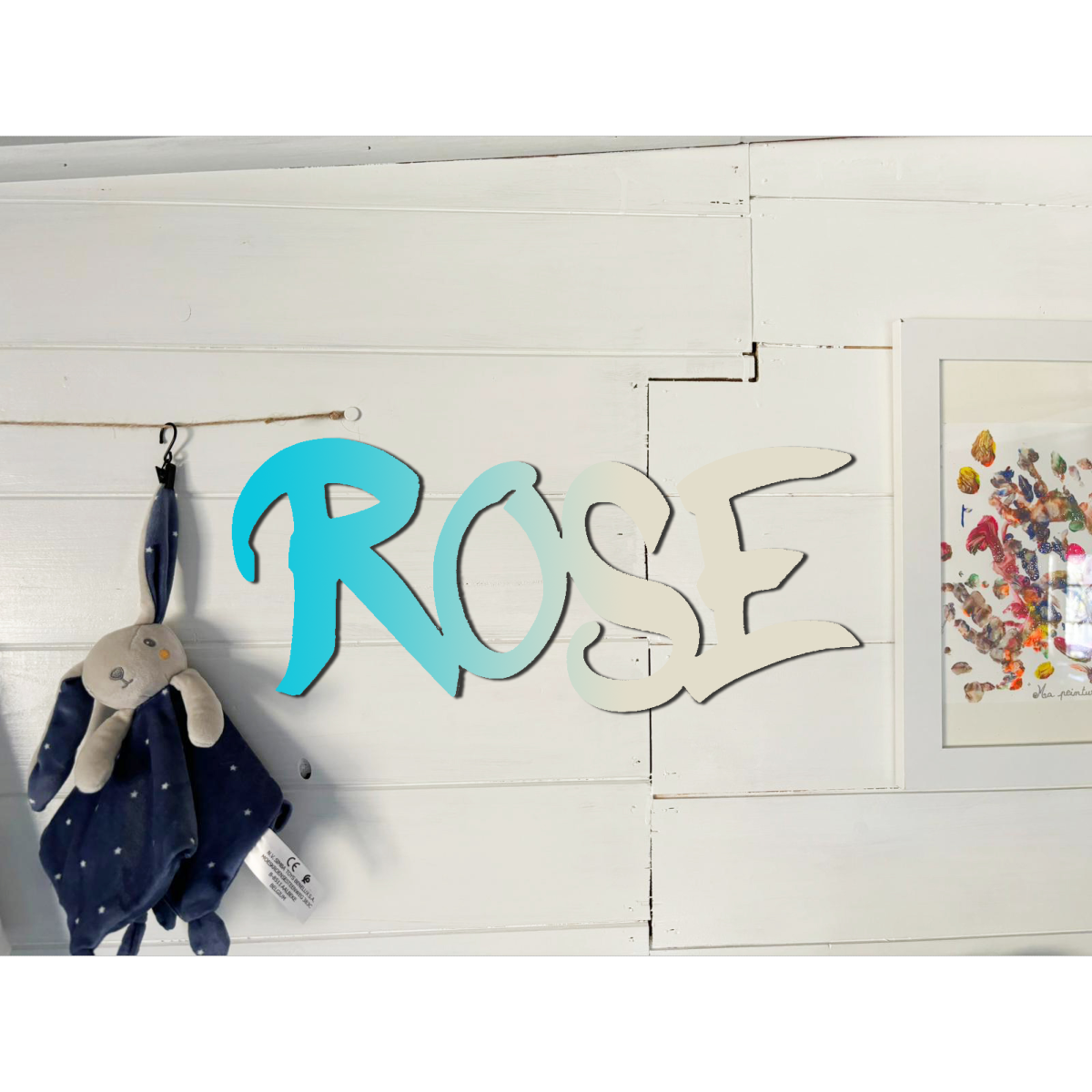 Le prénom est découpé sur une plaque de MDF 3 mm.