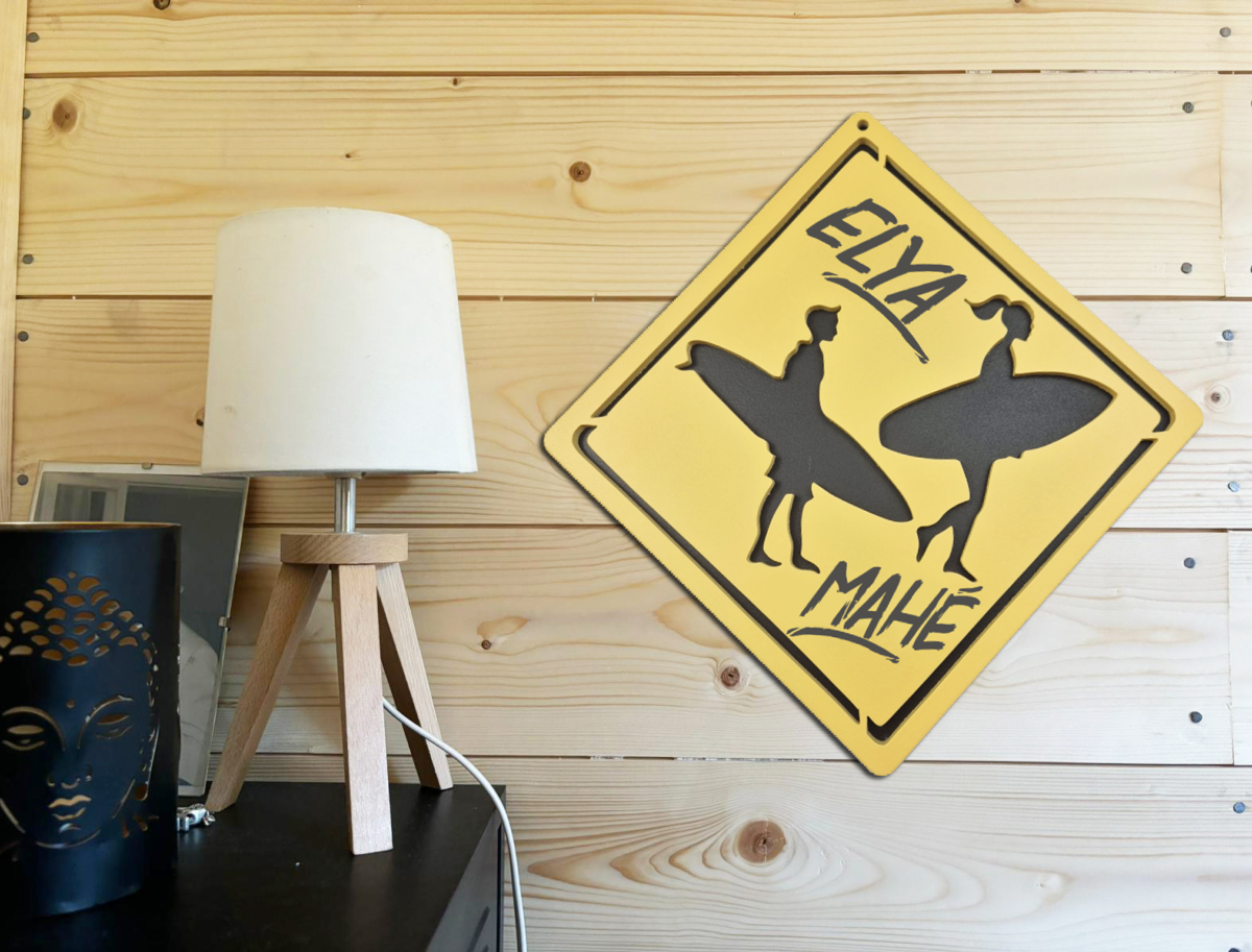 1. Découvrez notre Plaque Surf personnalisée – Motif Surf Fille/Garçon