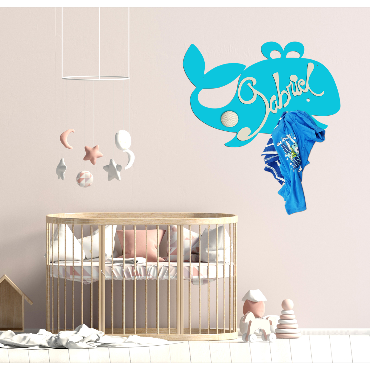 1. Porte manteau 2 patères forme Baleine personnalisé au prénom de votre enfant