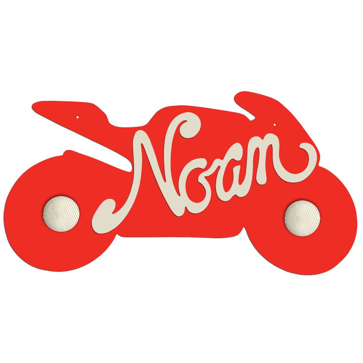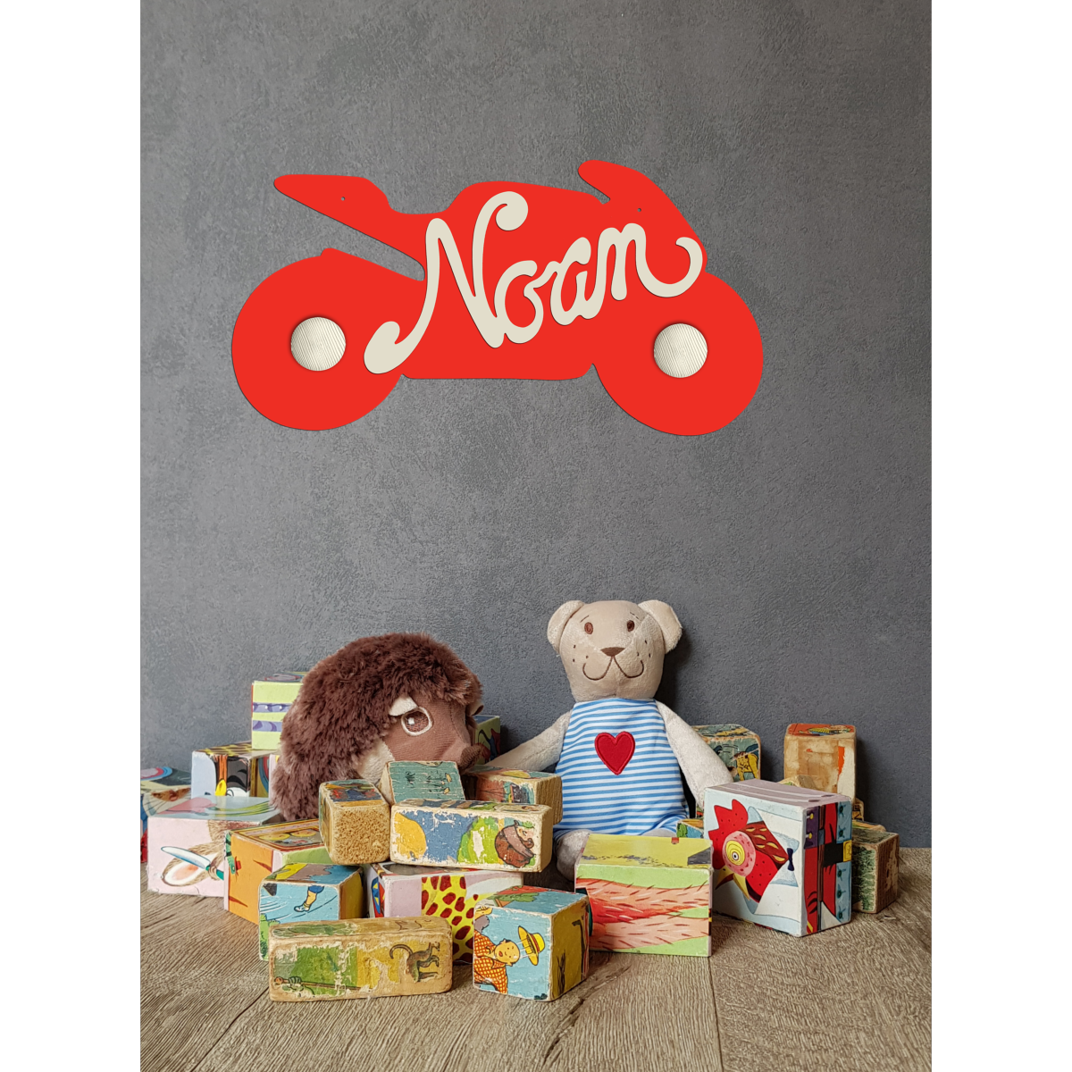 1. Porte manteau 2 patères forme Moto personnalisé au prénom de votre enfant