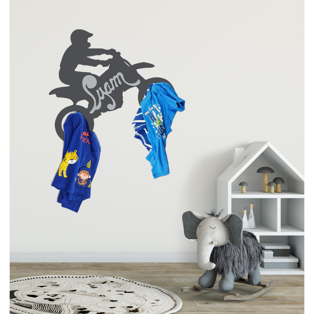 1. Porte manteau 2 patères forme Motocross personnalisé au prénom de votre enfant