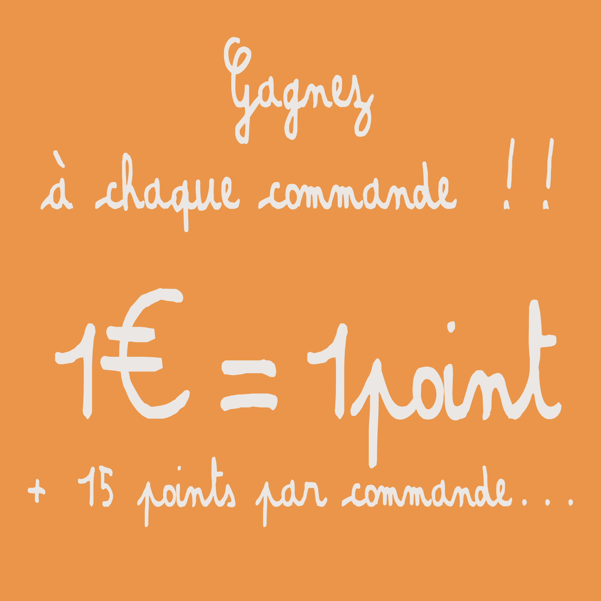 Programme de fidélité![]() A chaque commande gagnez des points !Gagnez des points : 1 € d'achat = 1 point dès votre première commande, et gagnez 15 points en plus à chaque commande. Les points acquis sont calculés sur le total de la commande, hors frais de port. Vous serez informé par email de l’obtention de vos réductions grâce à vos points de fidélité. Pour consulter votre solde de points, identifiez-vous dans le menu « Mon compte ». Bénéficiez de réductions : Pour utiliser vos réductions, cliquez sur «Convertir les points de fidélité en remise » à l'étape de confirmation de commande. Le montant correspondant à votre réduction sera automatiquement déduit de votre commande. Conditions d’utilisation :