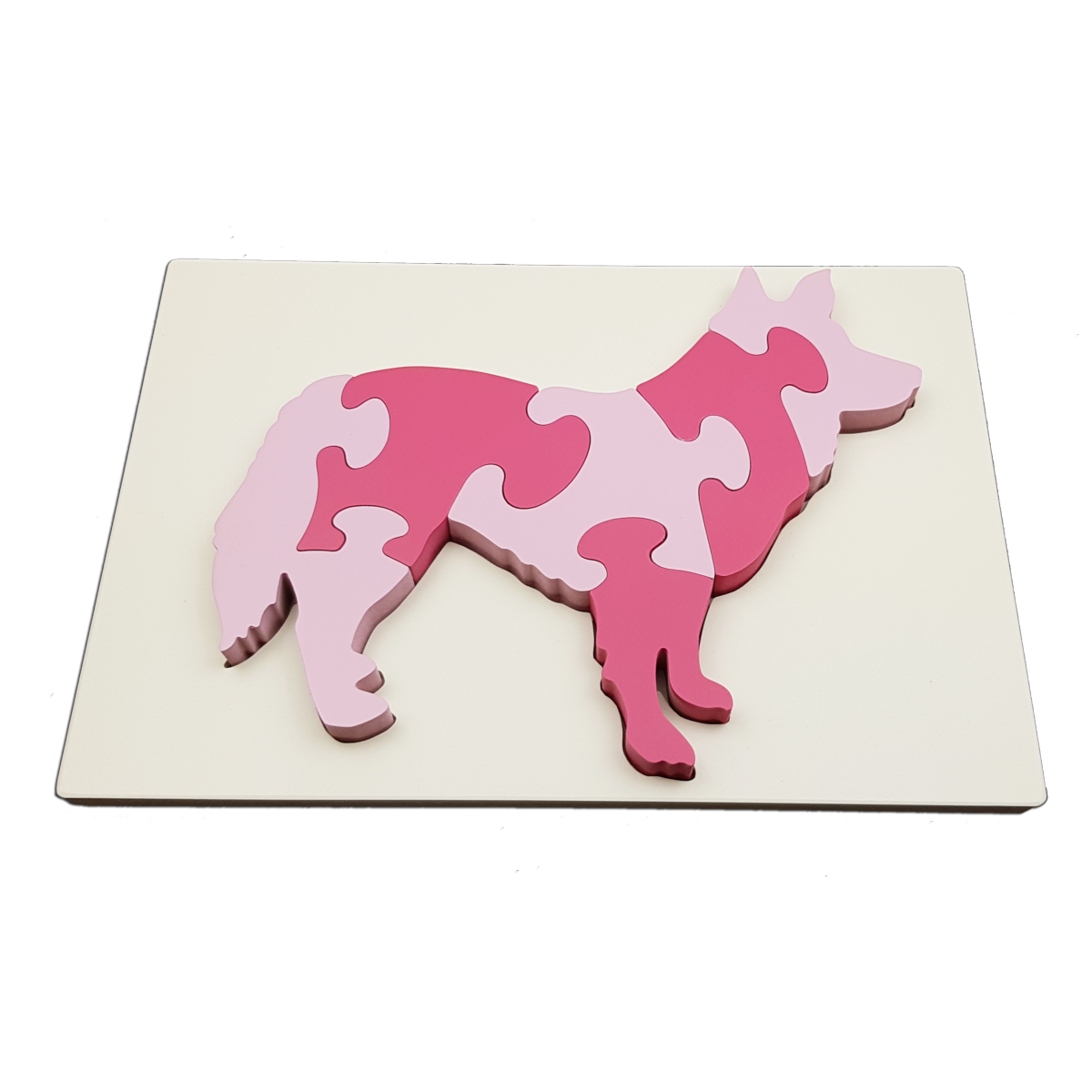 Découvrez ce puzzle éducatif et ludique, motif chien. 6 pièces et 2 couleurs.