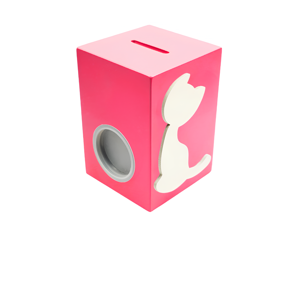 Tirelire en Bois pour Fille - Motif Chat - Couleur Framboise