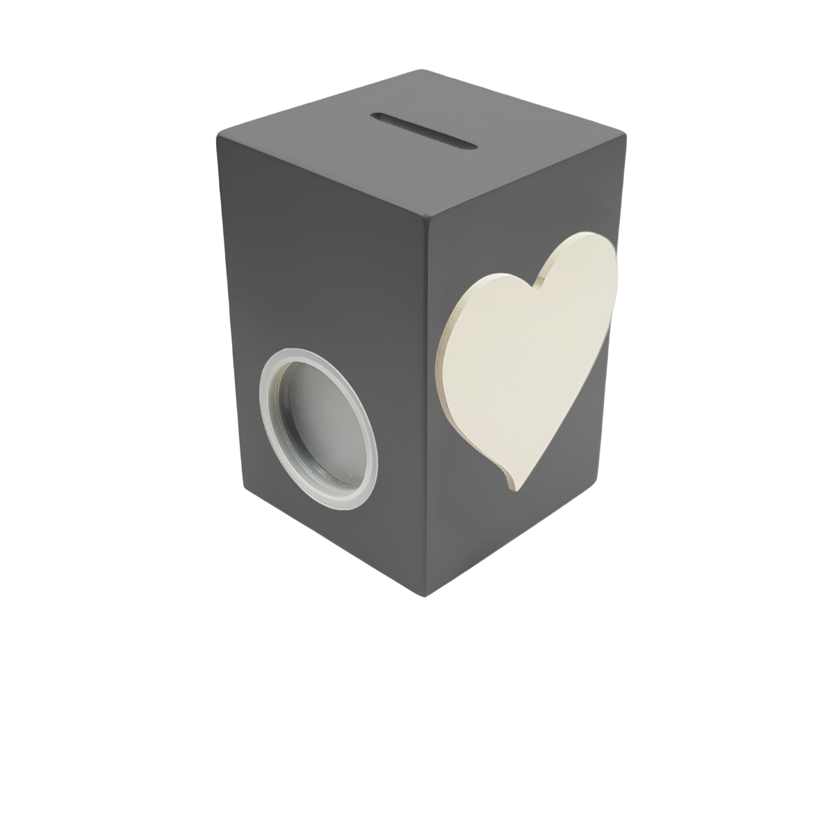 Tirelire en Bois pour Fille - Motif Cœur - Couleur Anthracite