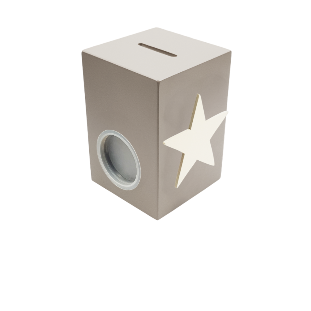Tirelire en Bois pour Garçon - Motif Etoile - Couleur Mastic