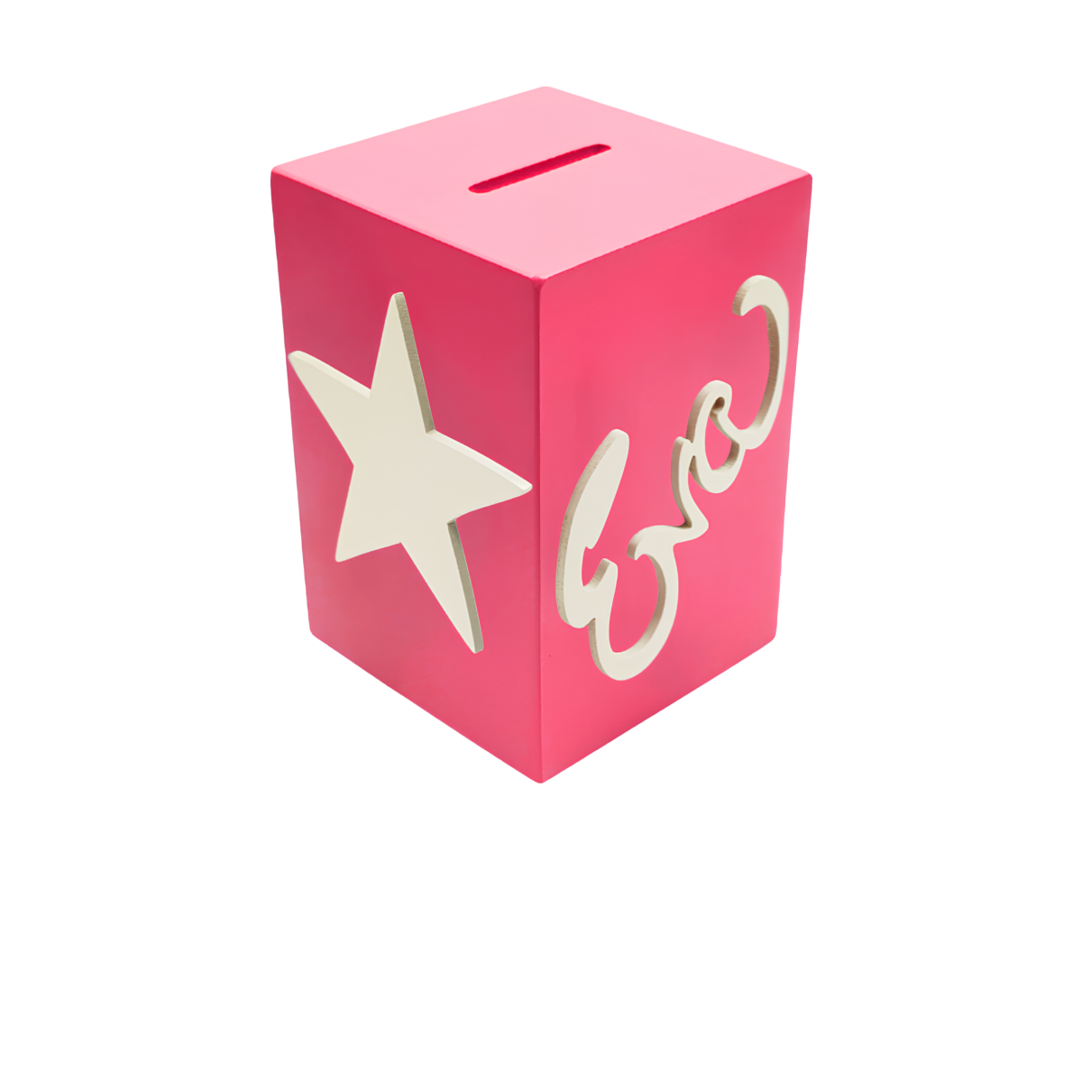 1. Tirelire personnalisée en bois - Motif Etoile - Couleur Framboise