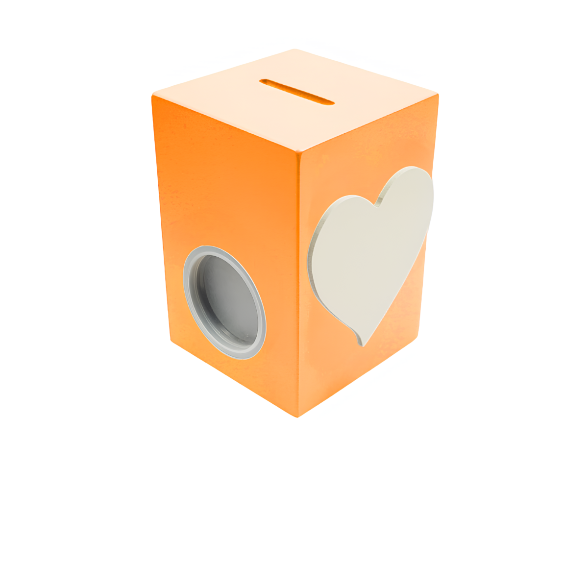 - Une tirelire pétillante et chaleureuse : Le motif de cœur associé à la couleur orange évoque énergie et optimisme, apportant une note vibrante et lumineuse à la décoration de la chambre de votre fille.