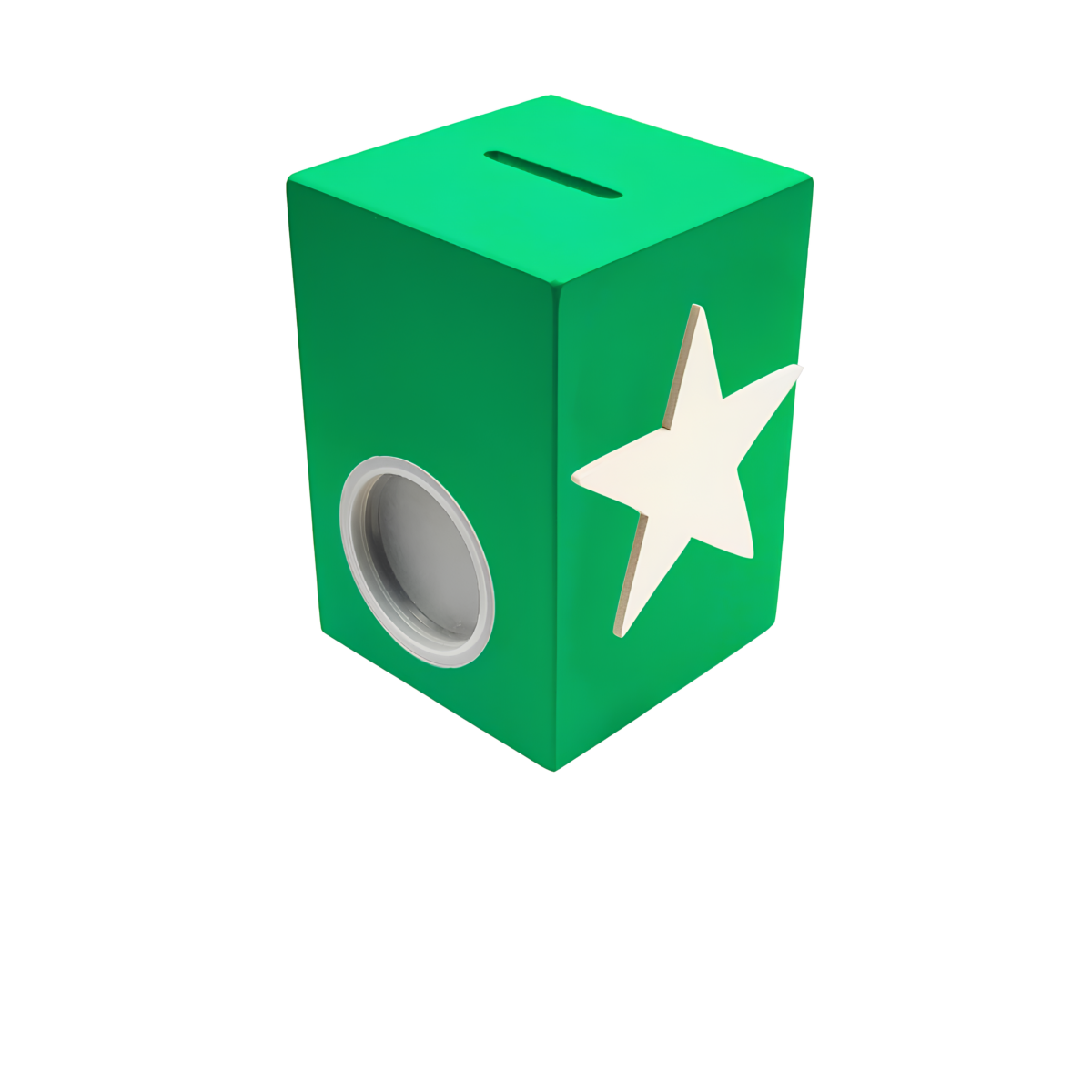 Une tirelire calme et raffinée : Le motif étoile, symbole de rêves et de protection, s’harmonise parfaitement avec le vert foncé, une couleur profonde et apaisante qui évoque la nature, la tranquillité et l’élégance discrète.