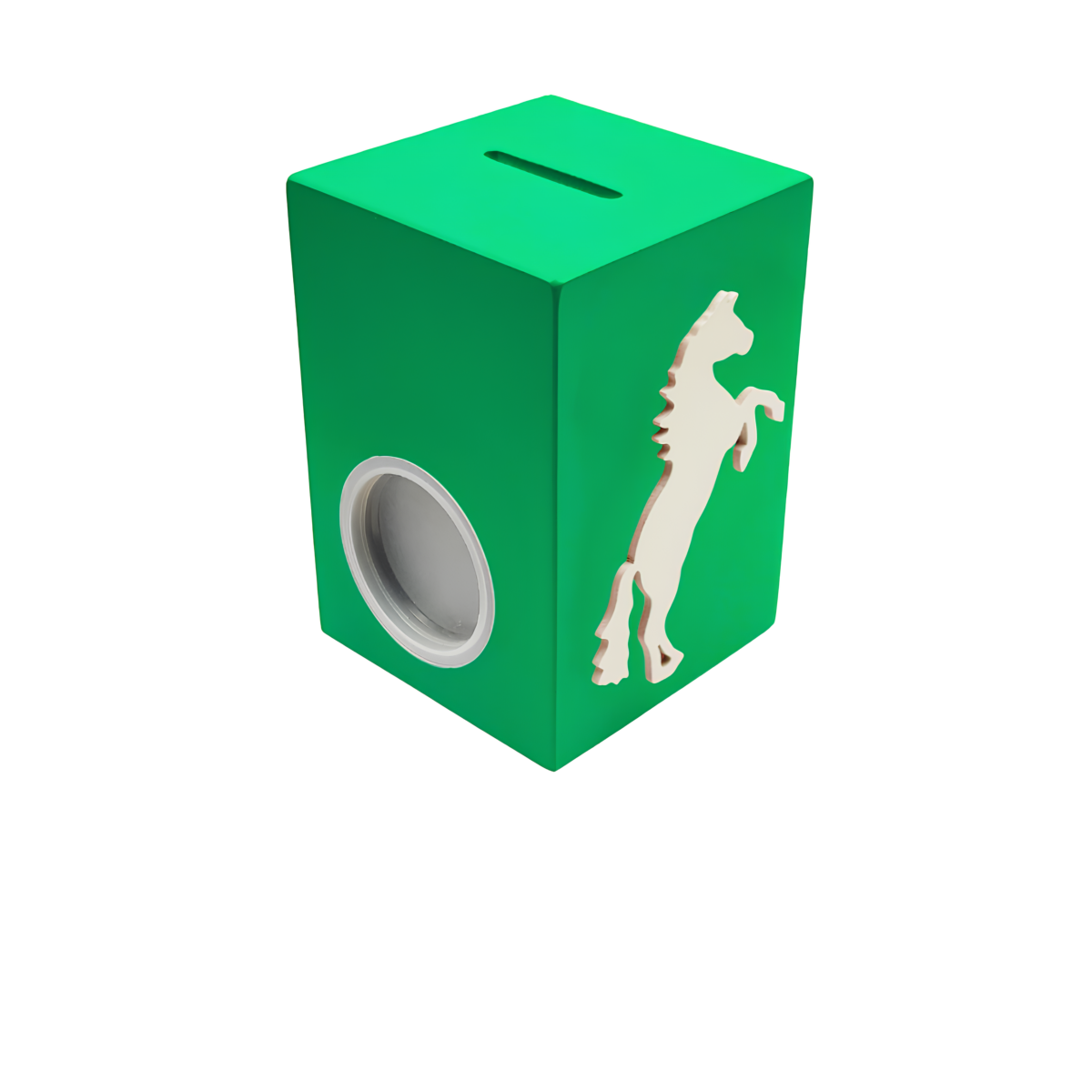 Offrez une tirelire cheval vert foncé : un objet unique, entre nature et éducation, qui accompagnera l’enfant dans ses premiers pas vers l’épargne avec sérénité et confiance.