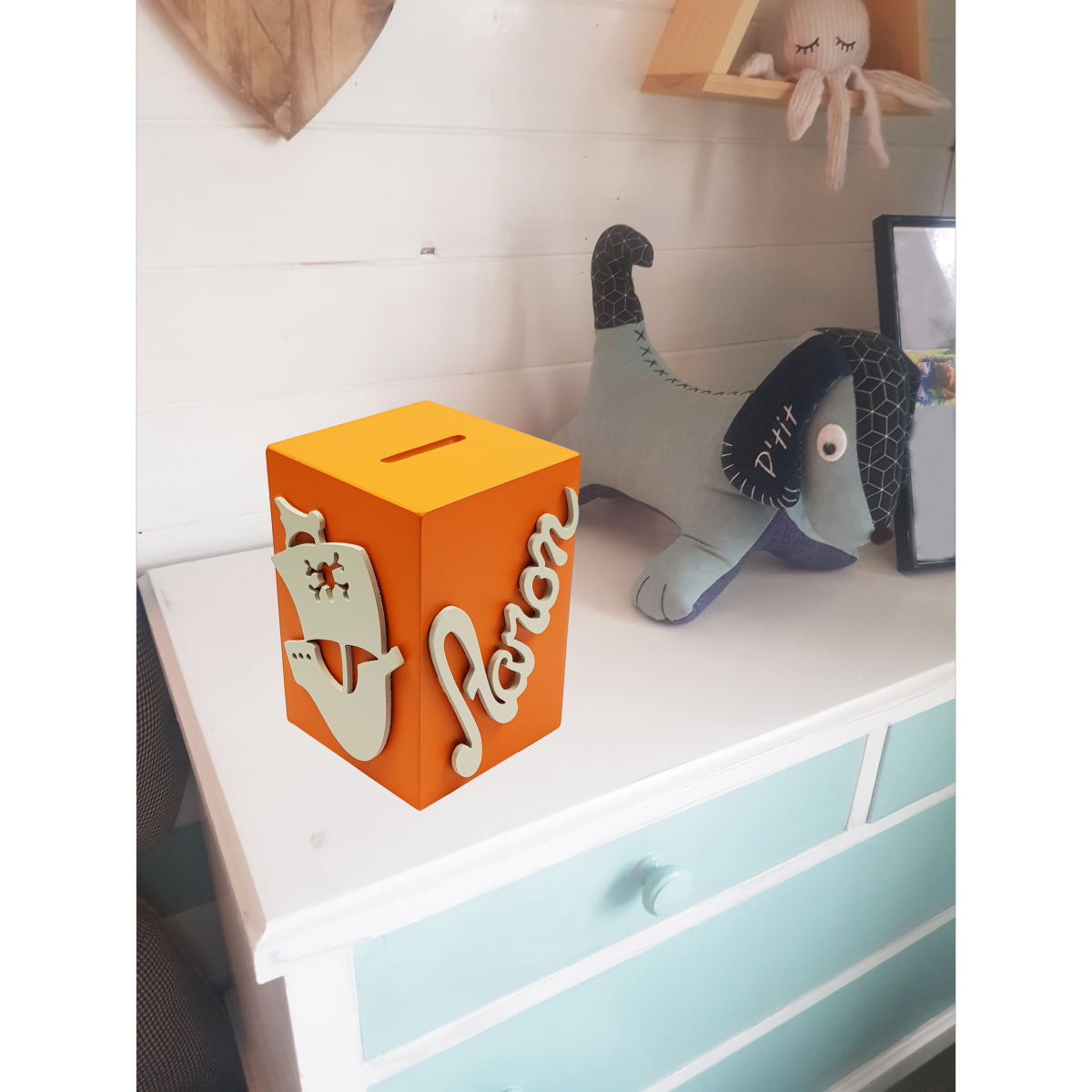 Tirelire Personnalisée pour Garçon- Motif Pirate - Couleur Orange
