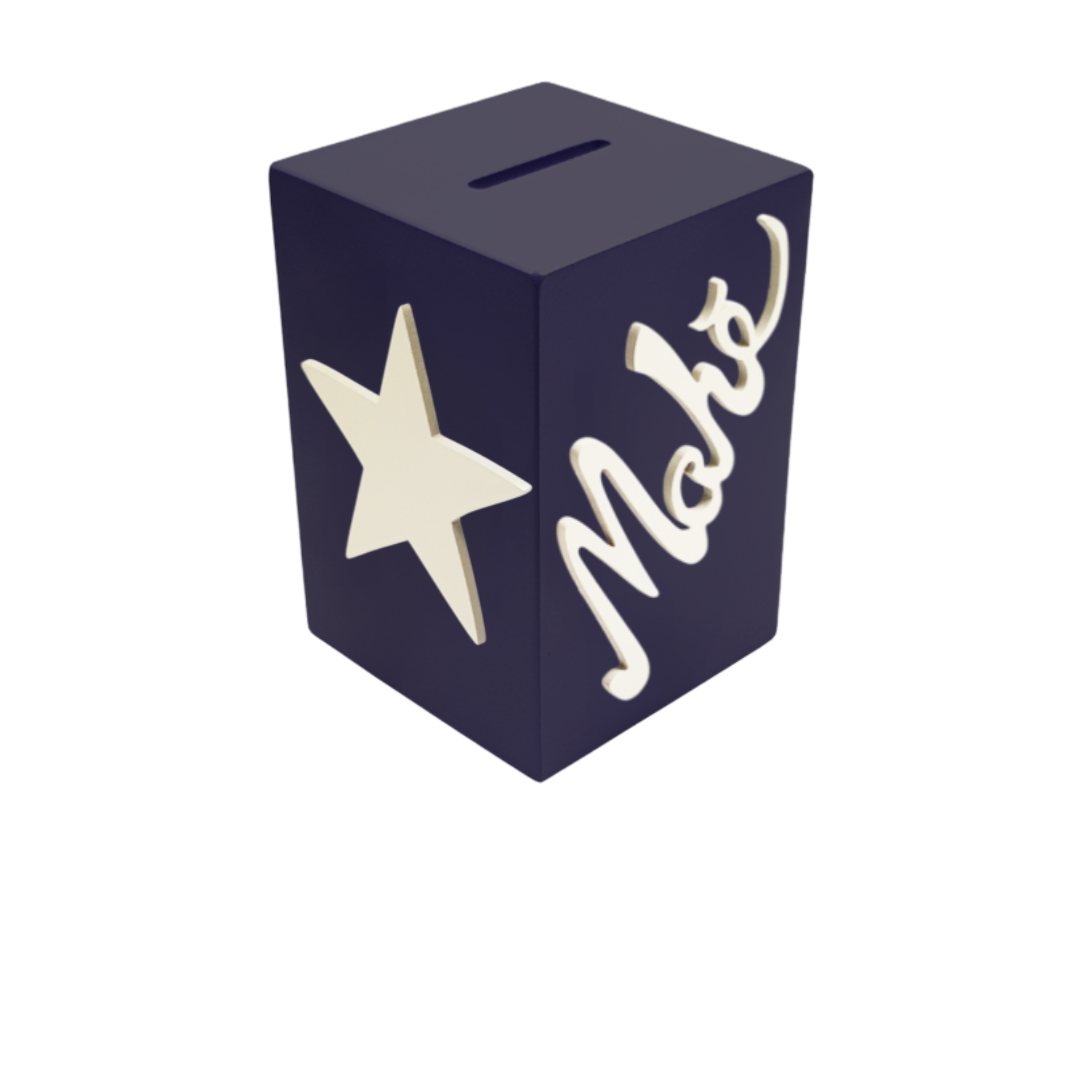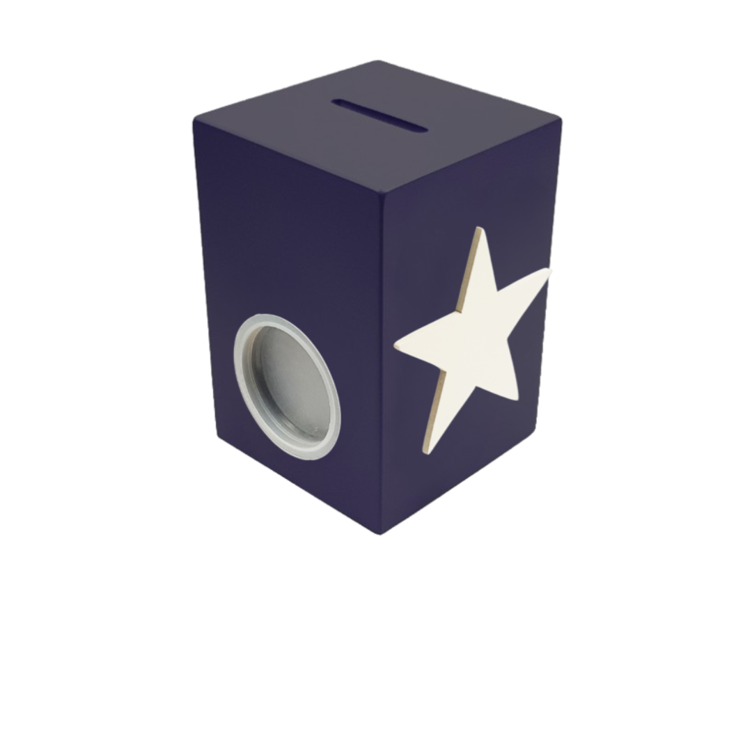 Alliez mystère, élégance et symbolique forte avec cette tirelire personnalisée au motif étoile, habillée d’un noir profond et moderne. Un objet décoratif et éducatif, pensé pour accompagner votre enfant dans ses premières économies avec style.