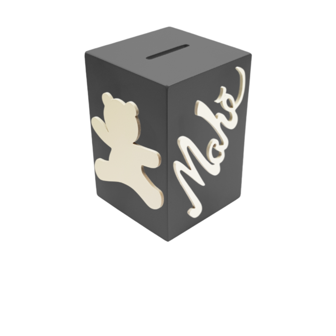 1. Craquez pour notre Tirelire personnalisée garçon – Motif Ourson Anthracite