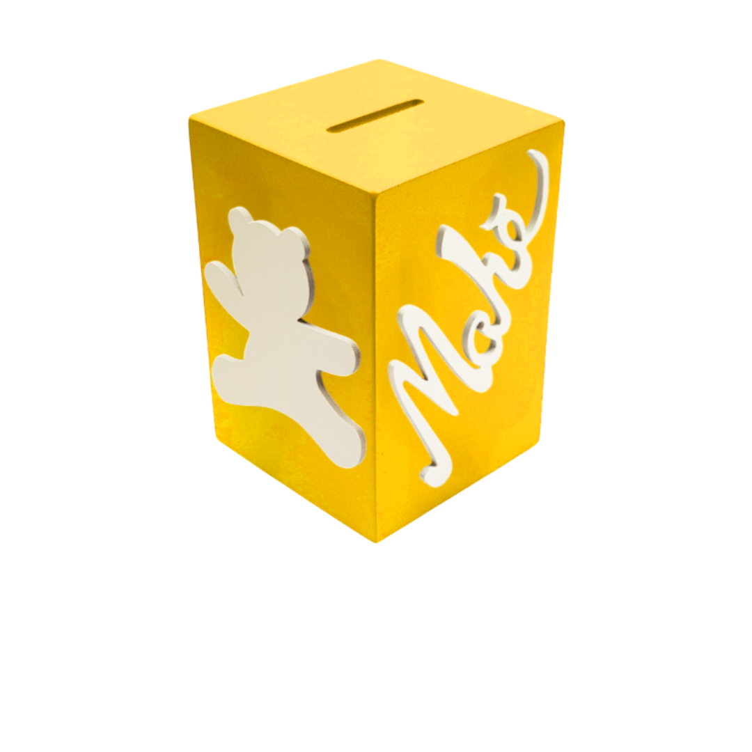 1. Apportez une touche de soleil avec notre Tirelire personnalisée garçon – Motif Ourson Jaune