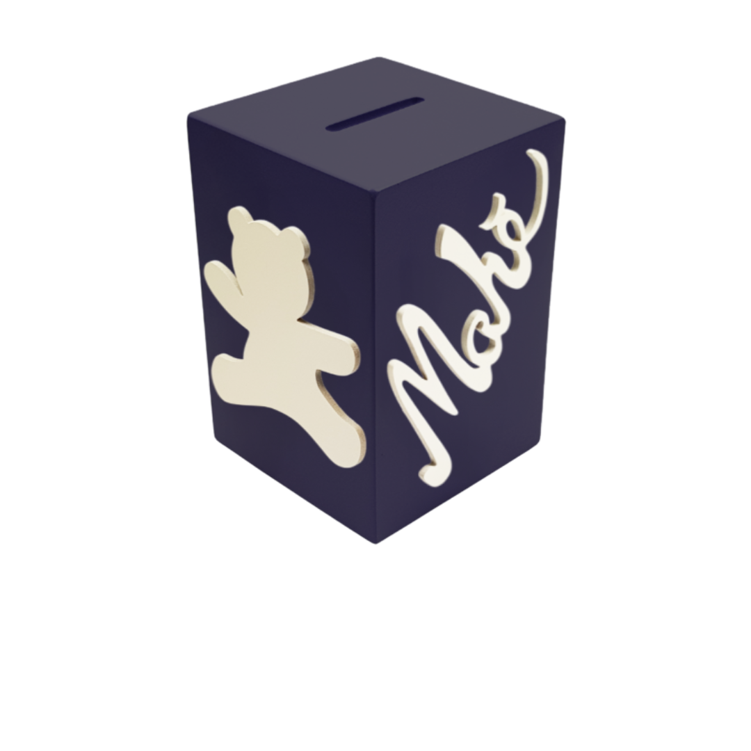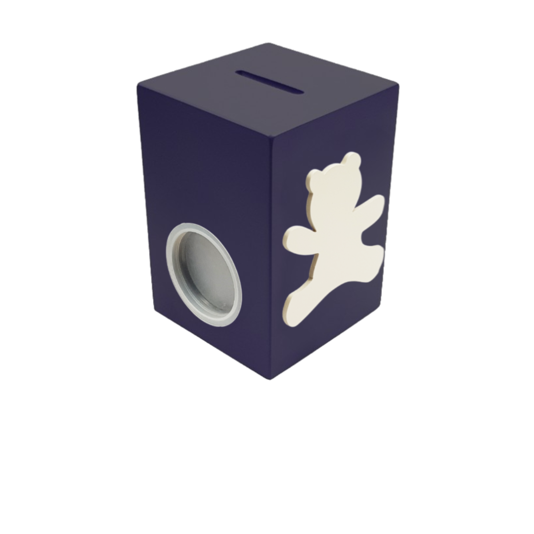 À la fois doux et fort, l’ourson noir veille discrètement sur les premières économies de votre petit garçon. Son coloris intense fait ressortir les formes douces du motif, créant un équilibre parfait entre sobriété et affection.